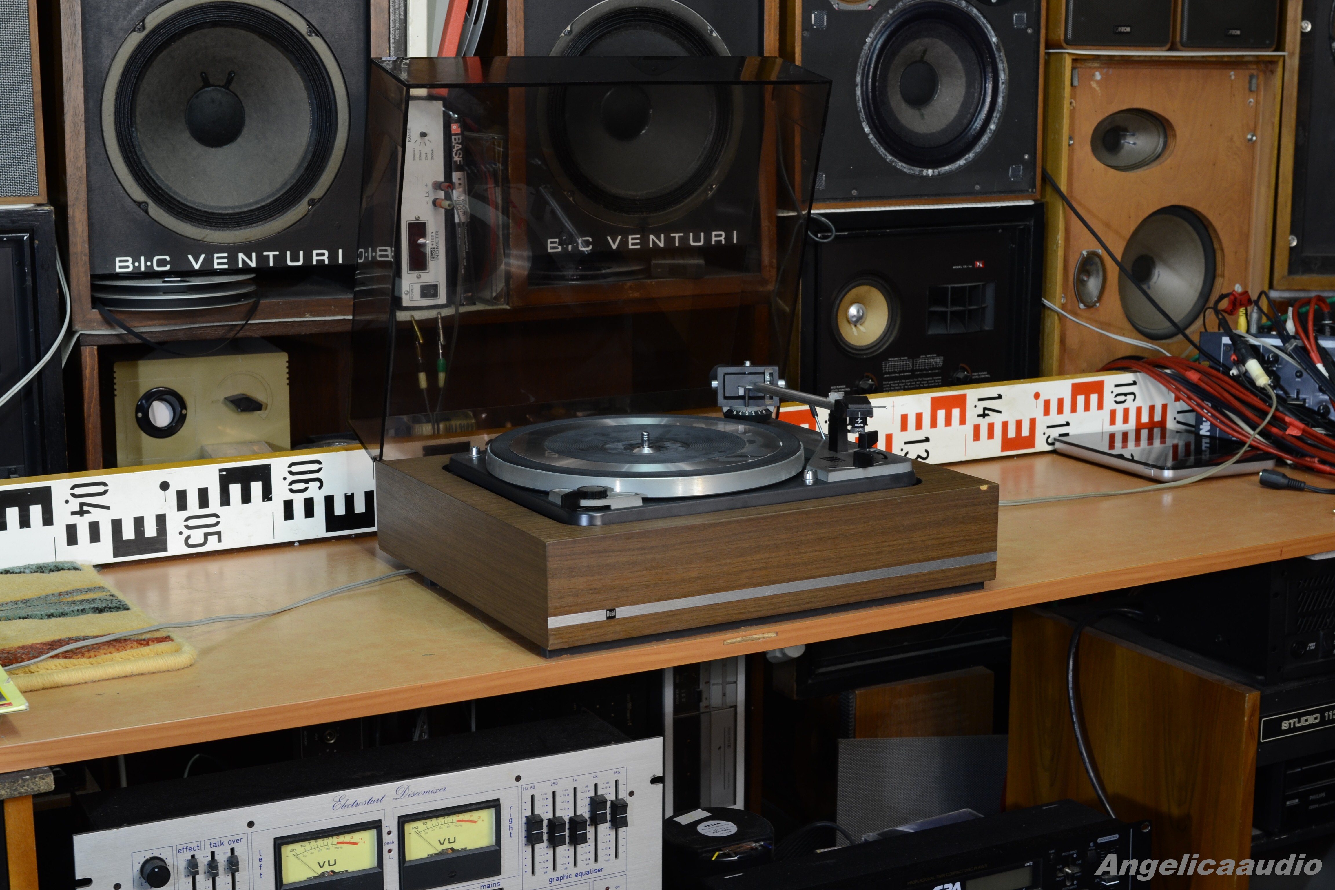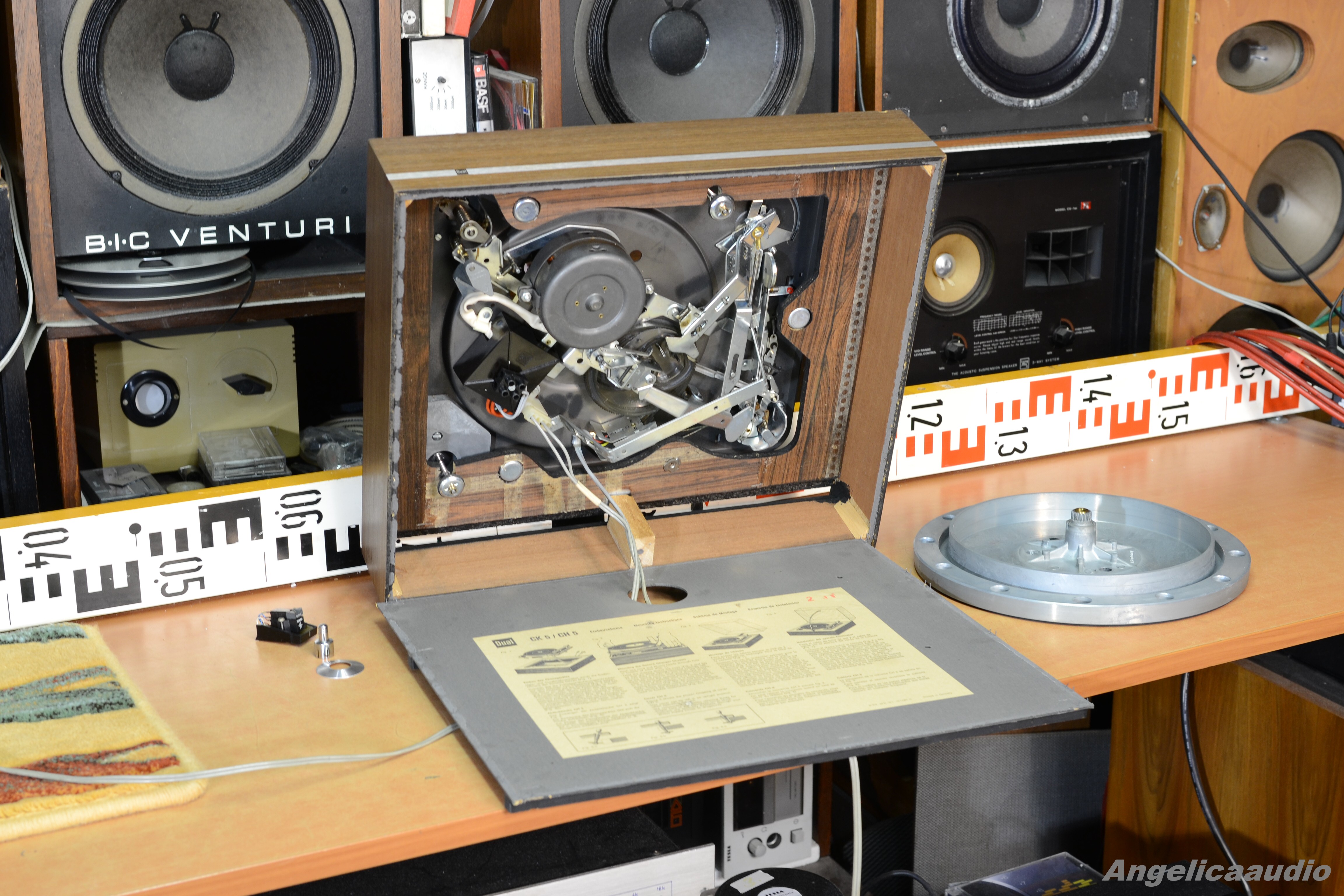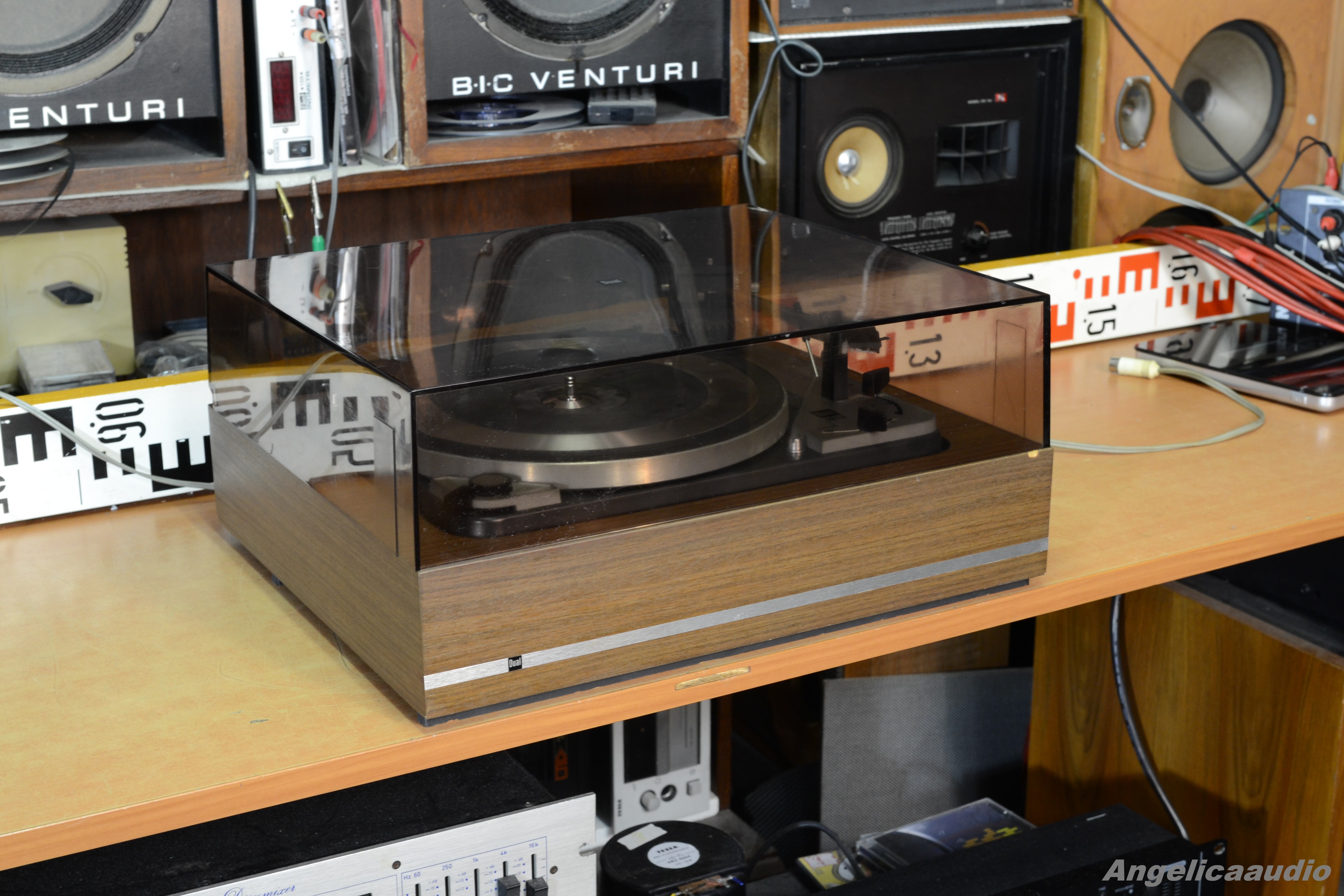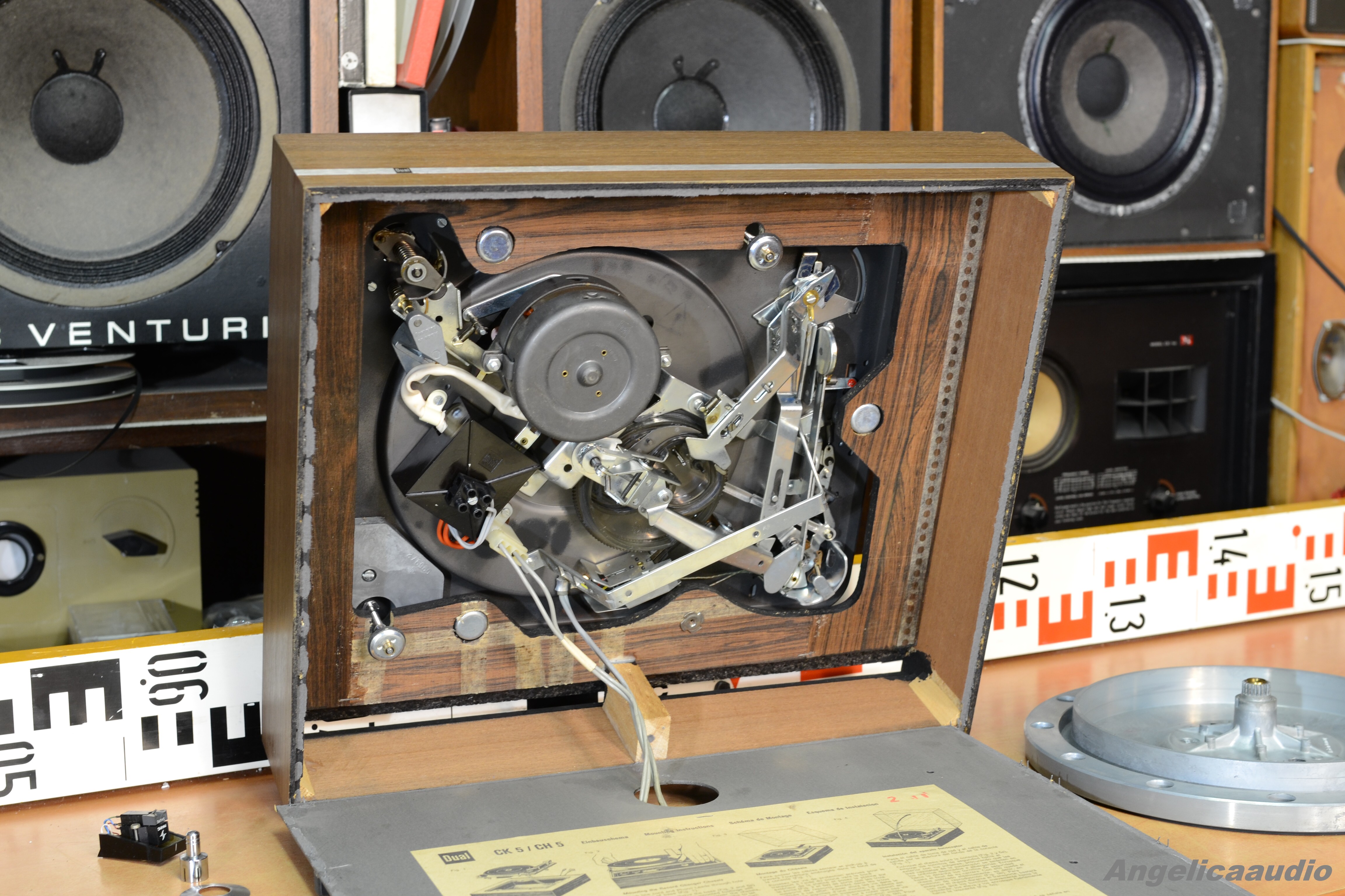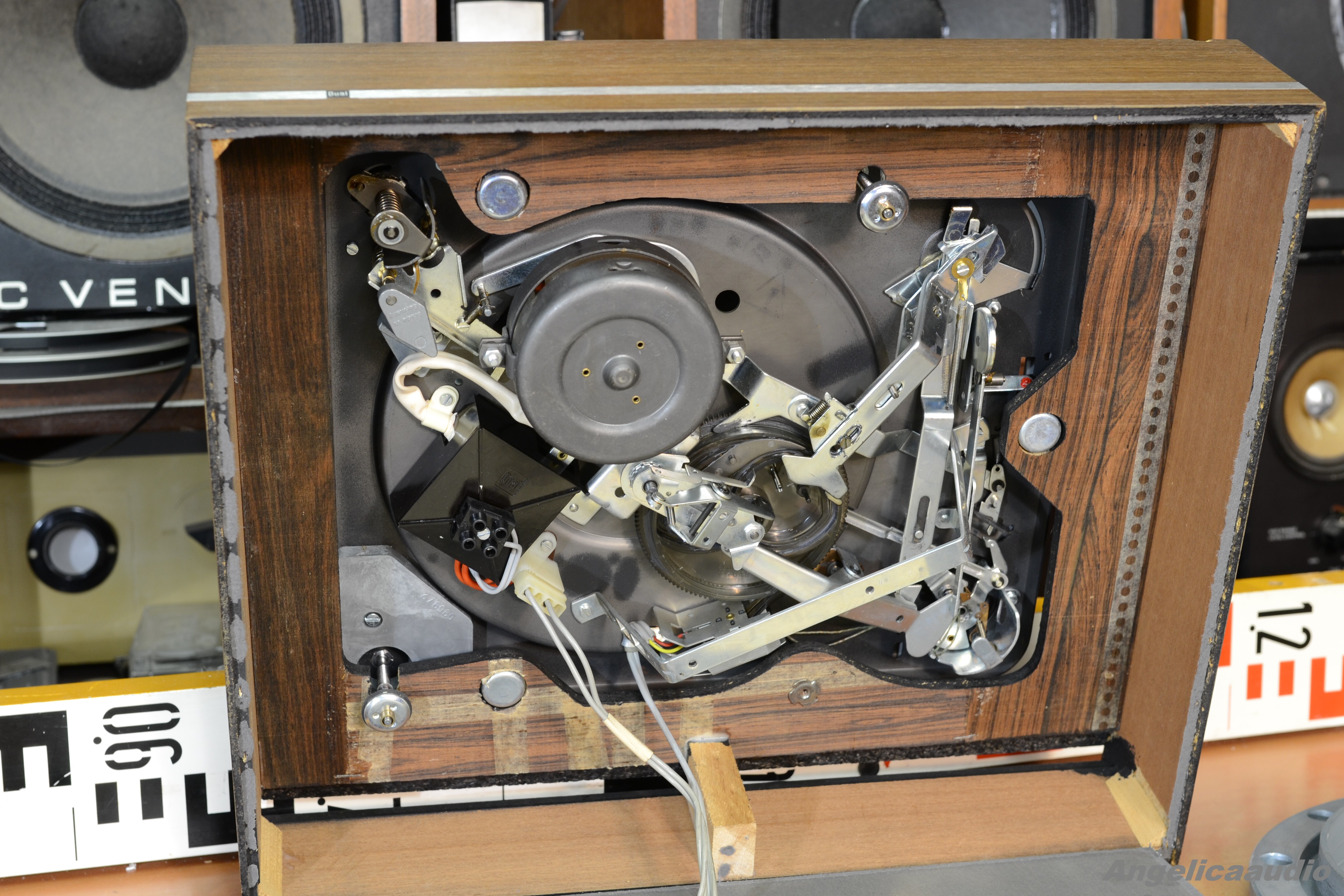 Legendární gramofon Dual 1019 (tzv. „tank“ mezi gramofony – velmi festovní a odolné zpracování). Velmi kvalitní talíř o hmotnosti přes 3,3 Kg!!!. Po prvním zapnutí neběžel motorek, proto jsem zařízení otevřel ze spodní strany – byl povytažený konektor síťového kabelu – po jeho zasunutí do správné polohy už motorek běžel bez problémů. Při této příležitosti jsem tedy nafotil i vnitřní část gramofonu. Vzhled viz detailní fotky. Funkčnost viz video.