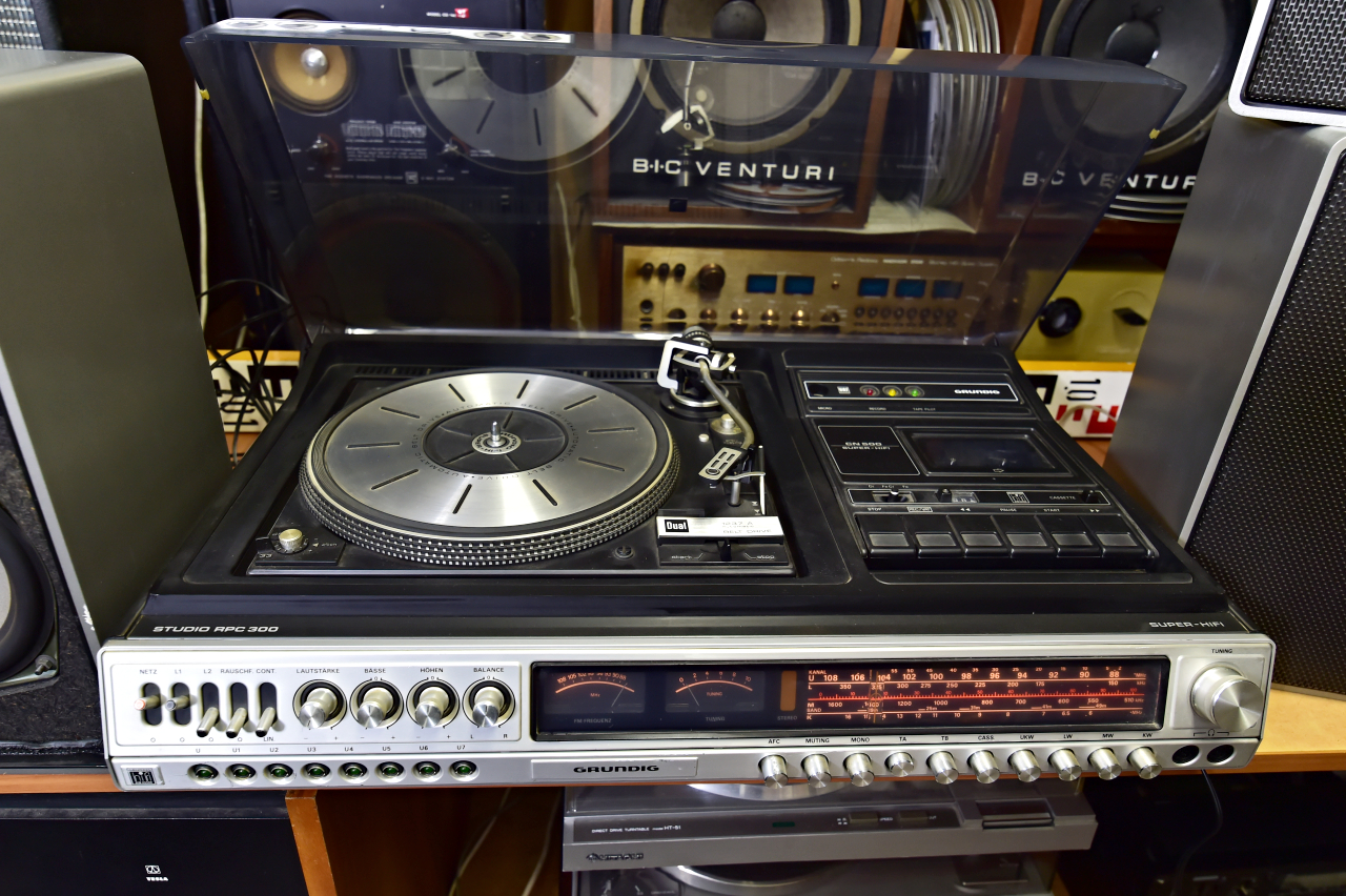 Hudební studio Grundig RPC 300 b – gramofonové šasí Dual 1237 A automatic belt drive – kazetový magnetofon Grundig CN 500 Super HiFi. Vzhled a funkčnost viz komentované video. Bez přenosky (hlavička – headshell součástí nabídky – viz video). Výroba Německo cca 1976-1978.