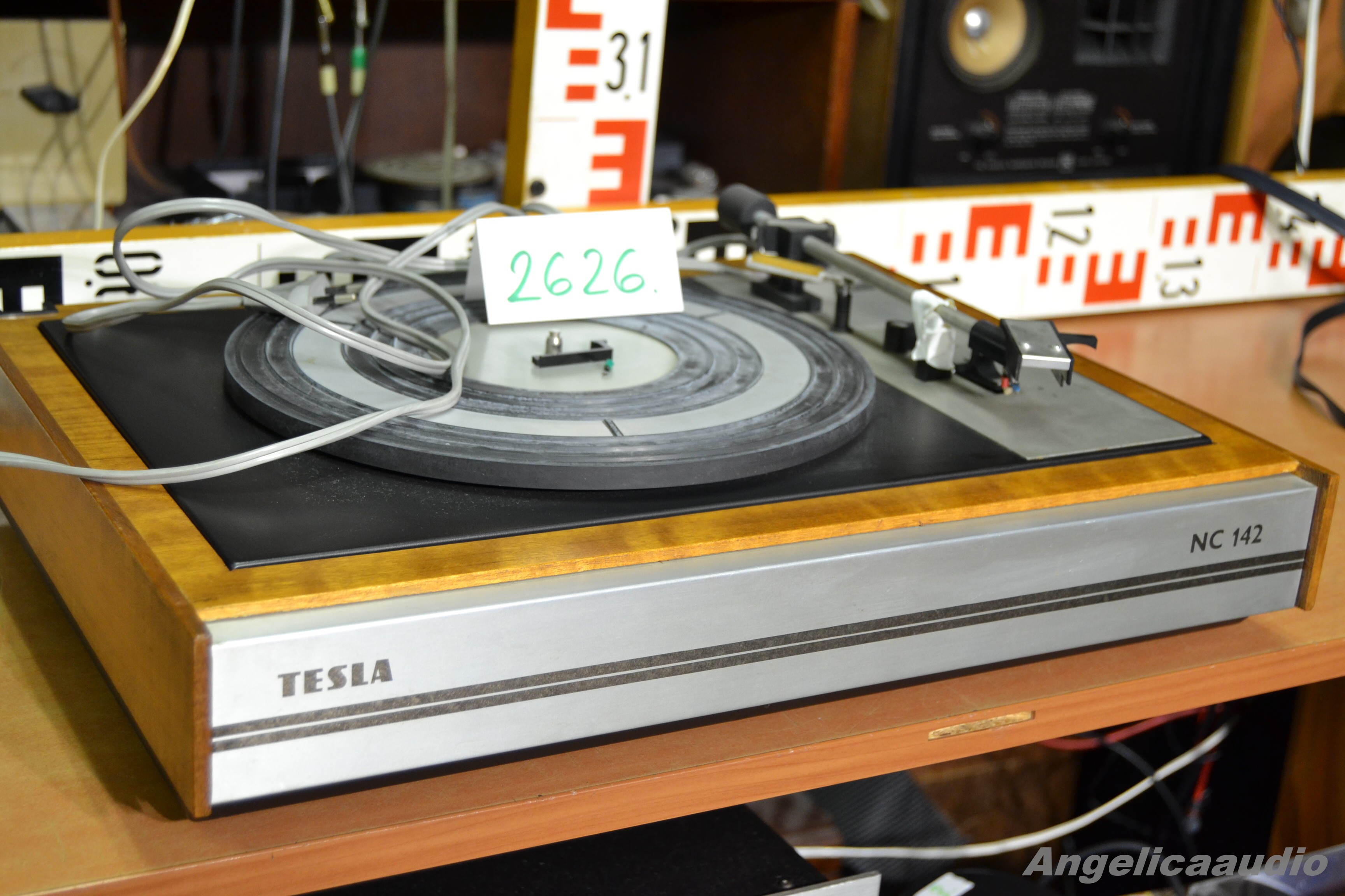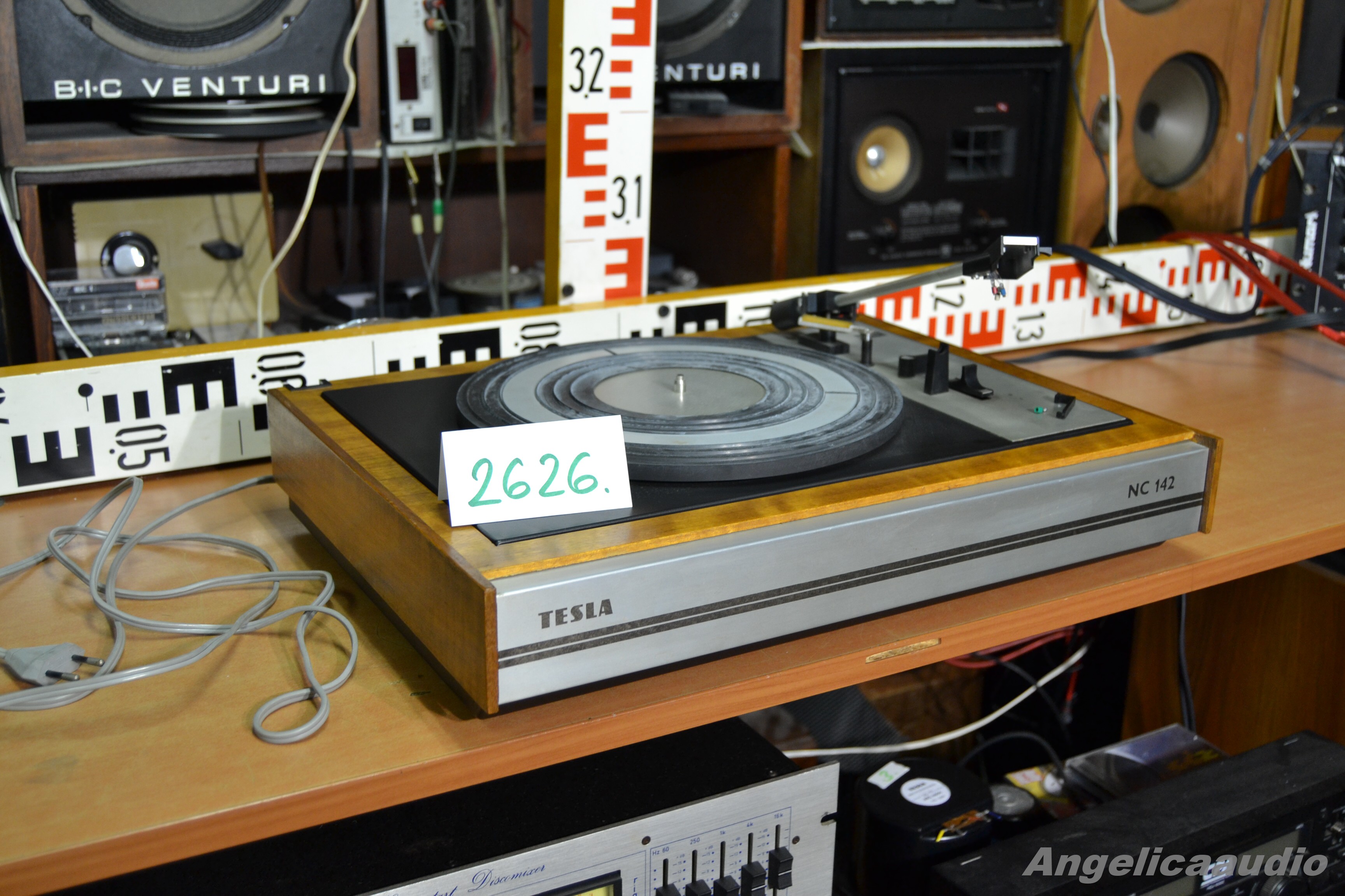 Gramofon Tesla NC 142. Bez plexi, bez přenosky. Po zapnutí se rozeběhne motorek, spouštění a zvedání raménka funkční. Zvuk byl špatný (pravděpodobně špatný kontakt v konektorech ze zadní části přenosky. Při pohybu těmito konektory se bohužel jeden konektor odtrhl od lanka (viz foto), konektor přiložen. Přenoska Tesla VM 2101 demontována a není předmětem této nabídky. Do prodeje jako nekompletní zařízení k údržbě či na náhradní díly. Vzhled viz detailní fotografie níže.