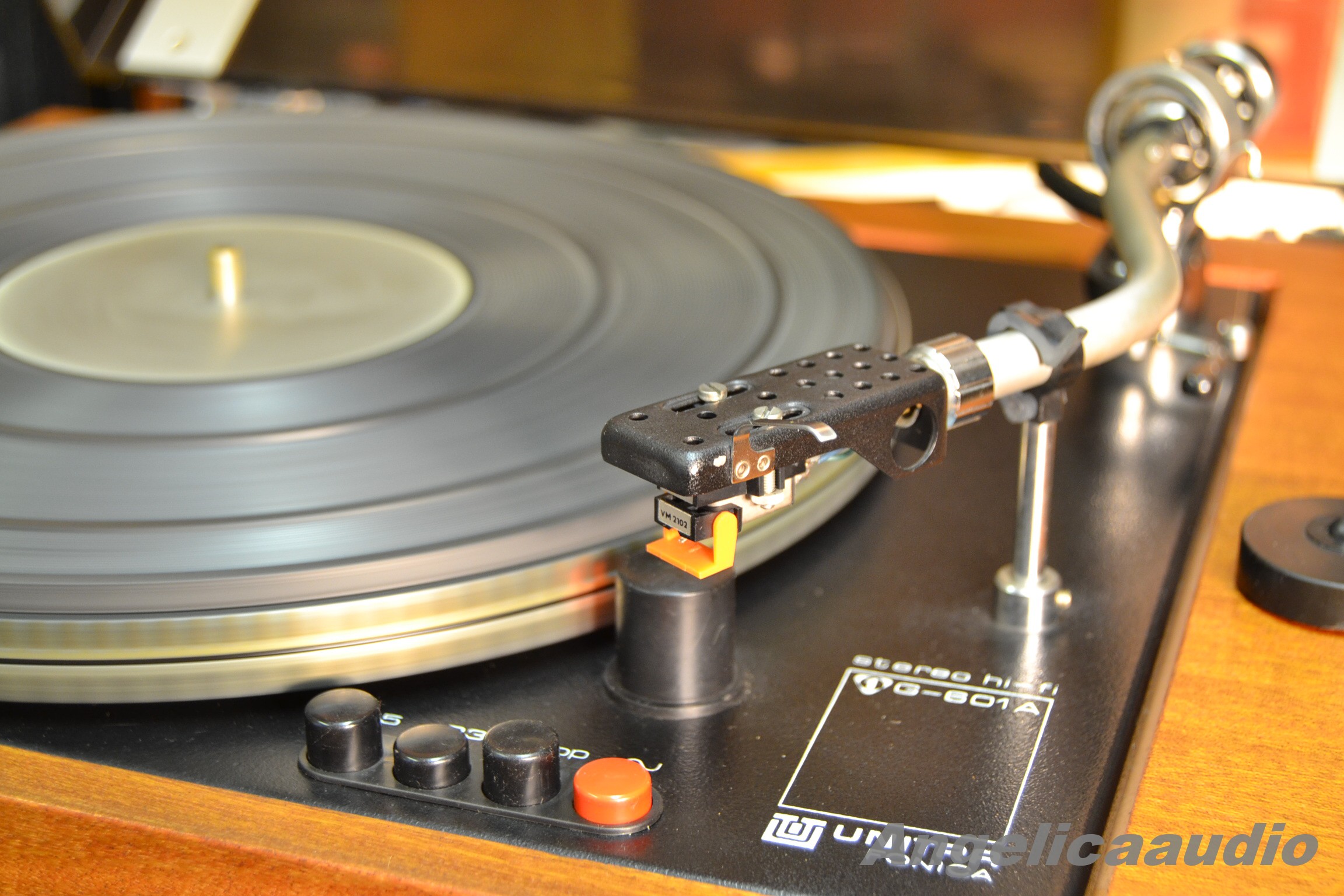 Gramofon UNITRA FONICA G-601A stereo hi-fi. Rok výroby 1978. Unikátní vzhledový stav – viz detailní fotografie níže. Funkčnost viz video níže. Signálový kabel je připojen standardním konektorem DIN 5 samec do konektoru DIN 5 samice na spodní části raménka přenosky (z vnitřní části gramofonu – stejně jako to je například u gramofonů Tesla NC 440, NC 450, NC 500 u legendárního raménka Tesla P1101, kloub raménka a závaží antiskatingu je také řešeno velmi podobně jako u raménka P1101). Ze spodní části gramofonu jedna neoriginální nožička – viz foto. Plastový držák zvedání raménka přenosky má prasklinky v místě zajišťovacích červíků, takže není dotažen na fest – je s ním možné pootočit ve vodorovné ose. Velmi těžký a festovní odlitek hlavního talíře. Stroboskopická regulace funkční na obě rychlosti – viz videa. Přenoska Tesla VM 2102 viz detailní fotografie – stav hrotu viz detailní fotografie.