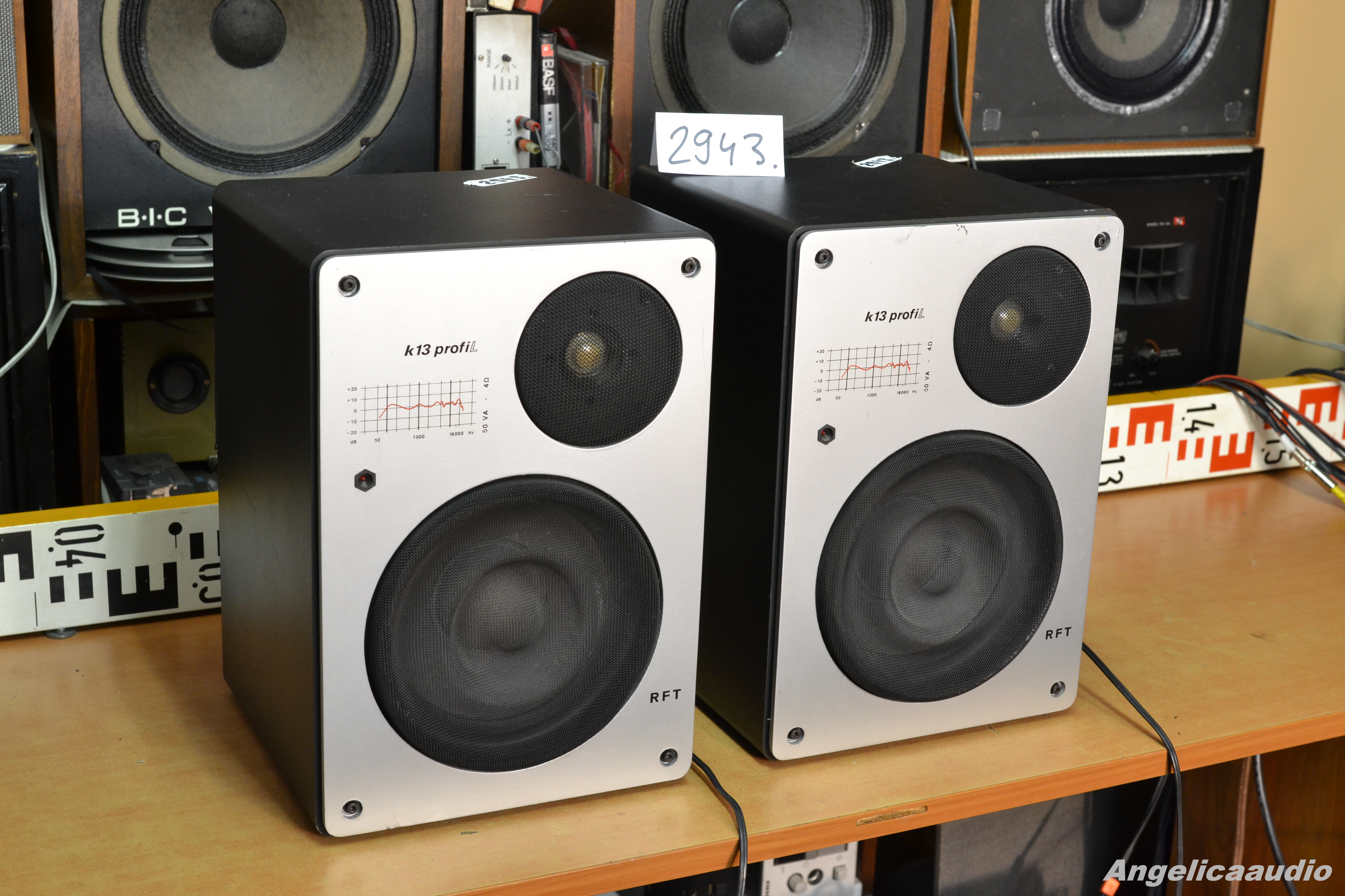 Kompaktbox RFT K13 profil – VEB Elektrofeinmechanik Mittweida, BT Geraetebau Limbach – Spakers – Boxes. Bass Speaker the legandary RFT L 2921 – VEB RFT Fernmeldewerk Leipzig DDR – 40VA/4 Ohm. This Speaker is very often used for the DIY production of the subwoofers. Tweeter RFT L9806 – 25VA/4 Ohm. Protection signalized by the red diode. Lautsprecherbox RFT K13 Profil. Lautsprecher RFT L2921, RFT L9806, eine LED zur Überlastanzeige. Reprosoustavy RFT K13 Profil. Reproduktory viz info výše. Signalizace přetížení červenou diodou.