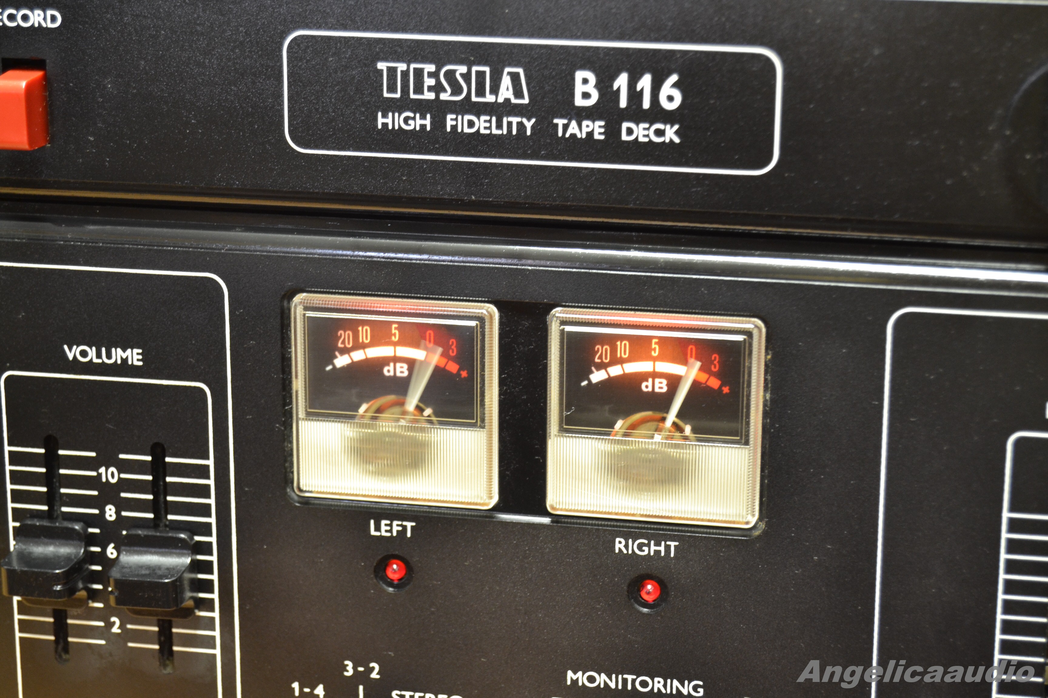 Magnetofon Tesla B116. Bez cívek, bez pásky, bez plexi krytu. Vzhled viz foto – chybí caplíky tahových potenciometrů. Funkčnost viz video. Na videu nejprve nahrávána skladba z externího zdroje signálu. Nahraná skladba následně přehrávána. Nic jiného než vidíte na videu zkoušeno nebylo. Žádné kabely kromě síťového nejsou předmětem této nabídky.