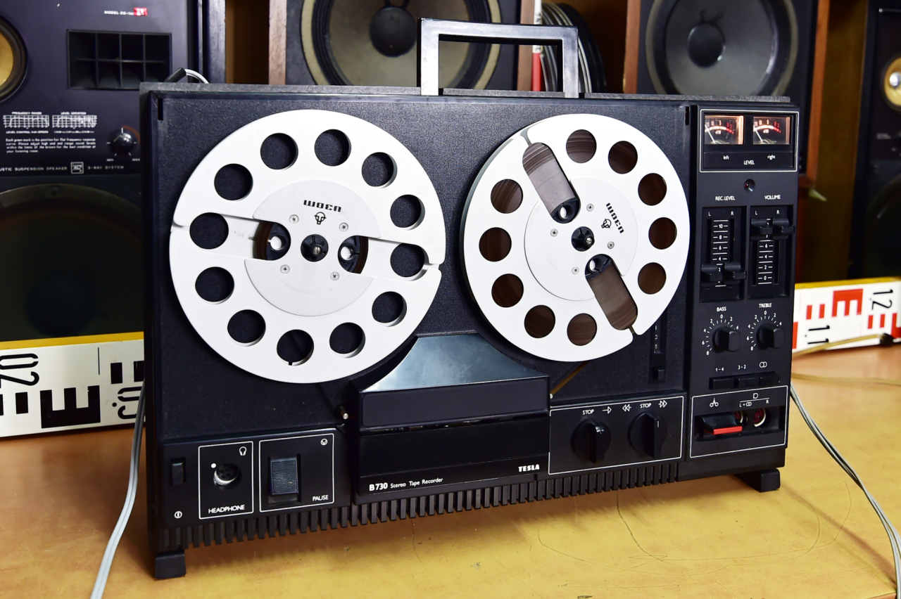 Kotoučový – cívkový magnetofon Tesla B730. Zařízení k údržbě. Včetně průhledného plexi krytu a hlavního černého plastového krytu. Cívky s páskou nejsou součástí této nabídky.