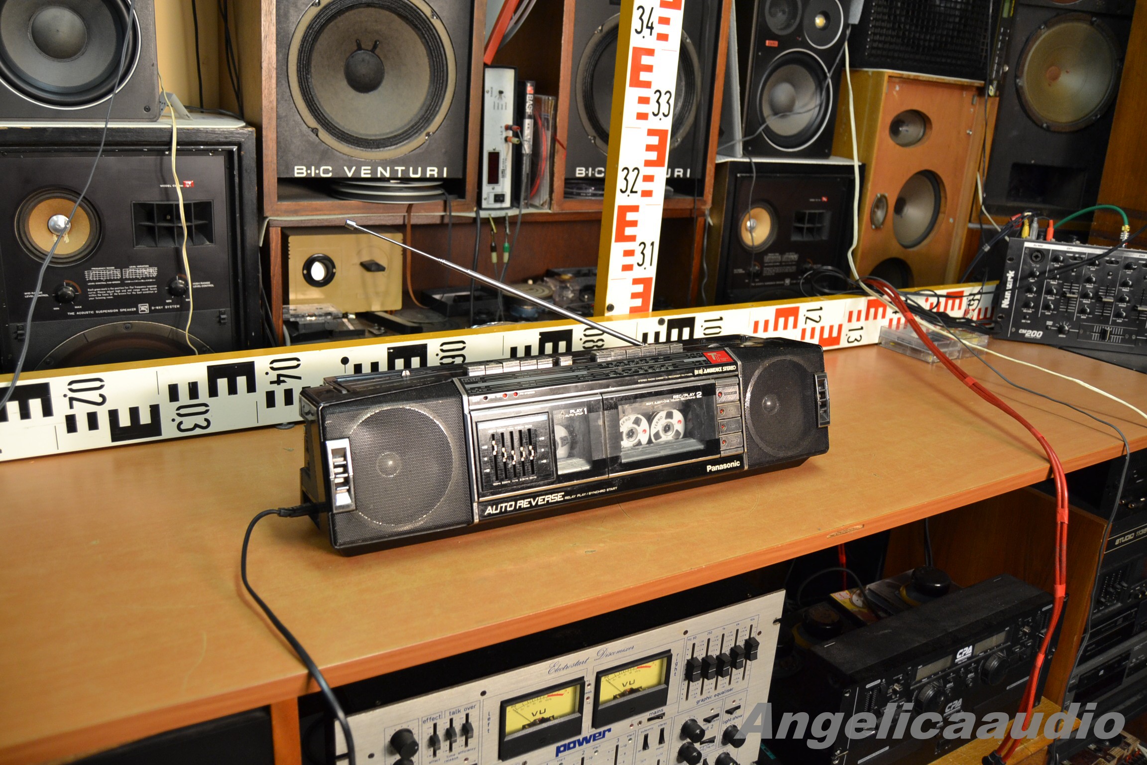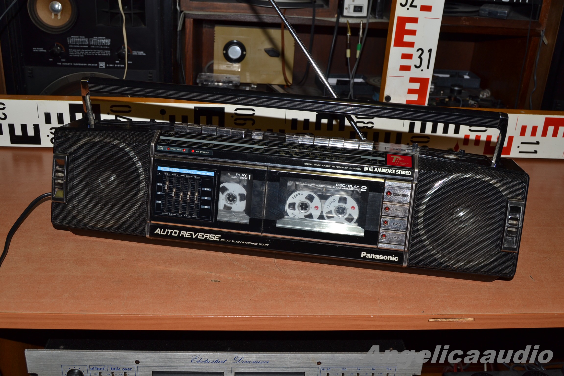Radiomagnetofon PANASONIC RX-FW29L. Vzhledový stav a rozměry viz detailní fotografie níže. Funkčnost viz 2 videa níže. Nejprve zkoušen externí vstup signálem z CD přehrávače, následně tuner FM. Na druhém videu zkoušena funkčnost „Ambience Stereo“ – v reálu výrazně slyšitelný zvukový rozdíl, na videu to bohužel vzhledem k mono mikrofonu u digitálního fotoaparátu slyšet není. Kazetové mechaniky potřebují údržbu – netočí. Kvalitu zařízení může dokumentovat velmi slušná hmotnost 4KG bez baterií. Nová anténa – původní měla ulomenou špičku, tak jsem do držáku nasadil nepoužitou stejného provedení.