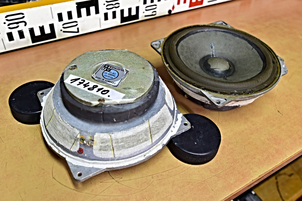 Hlubokotónové – basové reproduktory z reprosoustav Videoton SUPERMAX D402E. Reproduktor č.174811 má odštíplý kousek koše v oblasti otvoru pro šroub – viz video. Funkčnost viz video. Cena reproduktor 174810 – 999,- CZK (reproduktor skladem), cena reproduktor 174811 – 799,- CZK (tento kus PRODÁN)