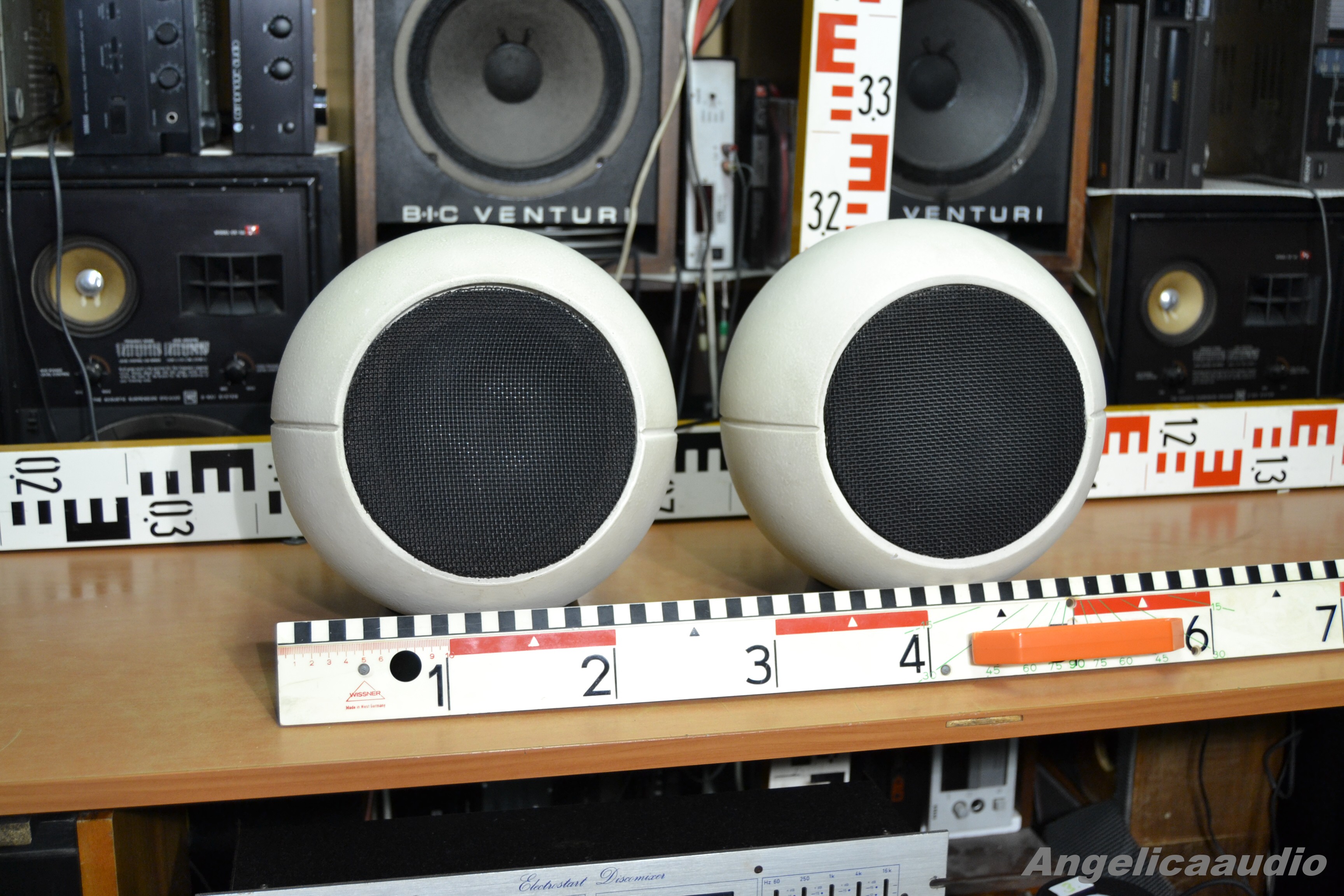 Kulové reprosoustavy RFT B7123 (260mm, 75-16.000Hz, 97dB, 4 Ohm, vnitřní objem 6 litrů, kompletně vytlumeno). Rok výroby cca 1979. Osazeno kvalitními reproduktory RFT L2322 s gumovým závěsem membrány. Reprosoustavy jsou kvalitně zpracované – ozvučnice NENÍ PLASTOVÁ, ale z cca 1cm silného materiálu připomínající svojí strukturou MDF. Zvukově i zpracováním na naprosto jiné úrovni než kulové reprosoustavy Tesla. Jeden kabel je velmi krátký – nutné nastavit – viz foto. Funkčnost viz video.