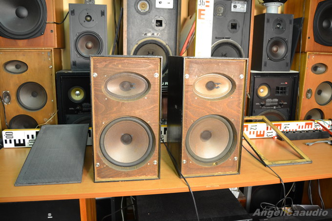Tesla 1PF 068 88, legendární staré dvoupásmové reprosoustavy s vynikajícím zvukovým projevem. Výrobní čísla totožná na obou reprosoustavách – 0162 – tj. reprosoustavy jsou z jednoho páru a ze začátku výroby tohoto typu – pravděpodobně z první série. Vzhled viz detailní fotografie na odkazu níže – tj. velmi výrazné vzhledové vady – přetřené ozvučnice na černo (částečně očištěno na zadních deskách lihem v oblasti štítků… lihem šla barva dolů – viz detailní fotky), další vzhledové vady povrchu ozvučnic – viz detailní fotky. Jeden z hlubokotónových reproduktorů má na membráně nějaký čáranec červenou pastelkou – viz foto. Velmi krátké přívodní kabely (pro odzkoušení nastaveno mými kabely z poslechovky – ty nejsou předmětem prodeje). Jednomu rámečku chybí textil. Co se týká funkčnosti tak viz video – výborný zvukový projev. Do prodeje jako vzhledově velmi poškozené, nicméně výborně hrající reprosoustavy.