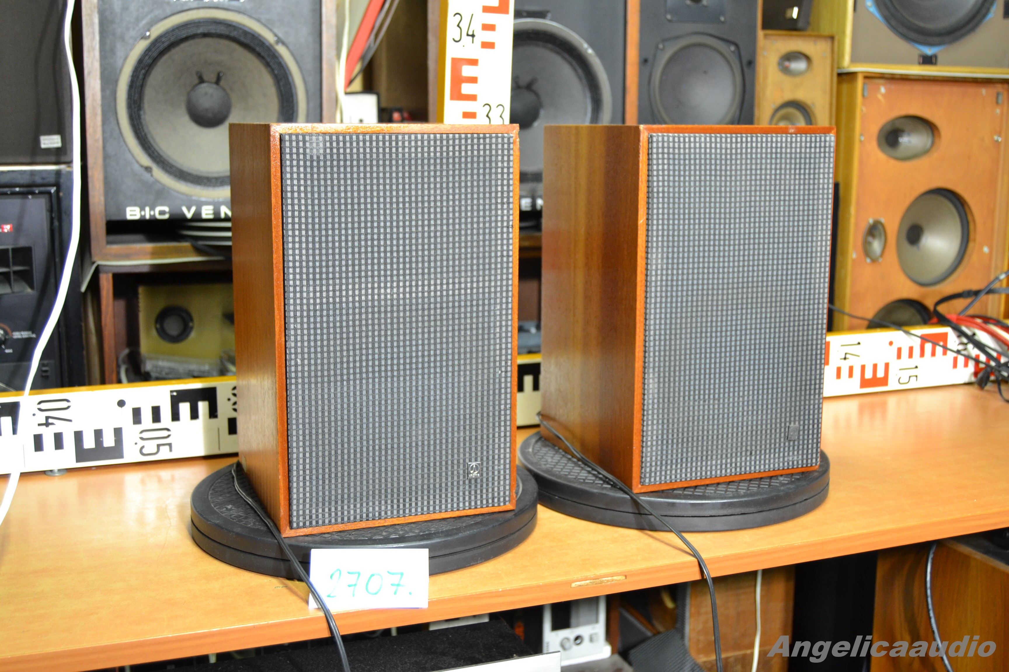 Legendární malé dvoupásmové reprosoustavy Tesla ARS 821. Vzhled viz detailní fotografie. Funkčnost viz video. Přívodní kabely velmi krátké – byly zapadlé dovnitř do reprosoustav, takže jsem musel vyndat basáky a kabely povytáhnout ven z ozvučnic. Basáky jsou typu ARN 5608 – což není příliš obvyklé (většinou jsou ARS 821 osazeny Tesla ARN 568), všechny šrouby byly zakápnuté originální šedou barvou a reprosoustavy nebyly s největší pravděpodobností nikdy otvírány. Považuji však za vhodné upozornit na skutečnost, že jsou osazeny Tesla ARN 5608 – protože ti, kteří tyto reprosoustavy znají by mohli očekávat ARN 568… i když ty se zase nedělaly s černým košem, takže by vám to asi při pohledu na reproduktor pravděpodobně došlo. Vzhledové vady ozvučnic – ťuknutý růžek, malá vada u zadního otvoru pro zavěšení atd.. no prostě to nejsou nové reprosoustavy. Včetně sítěk s originálními odznáčky. Stav sítěk viz detailní fotky.