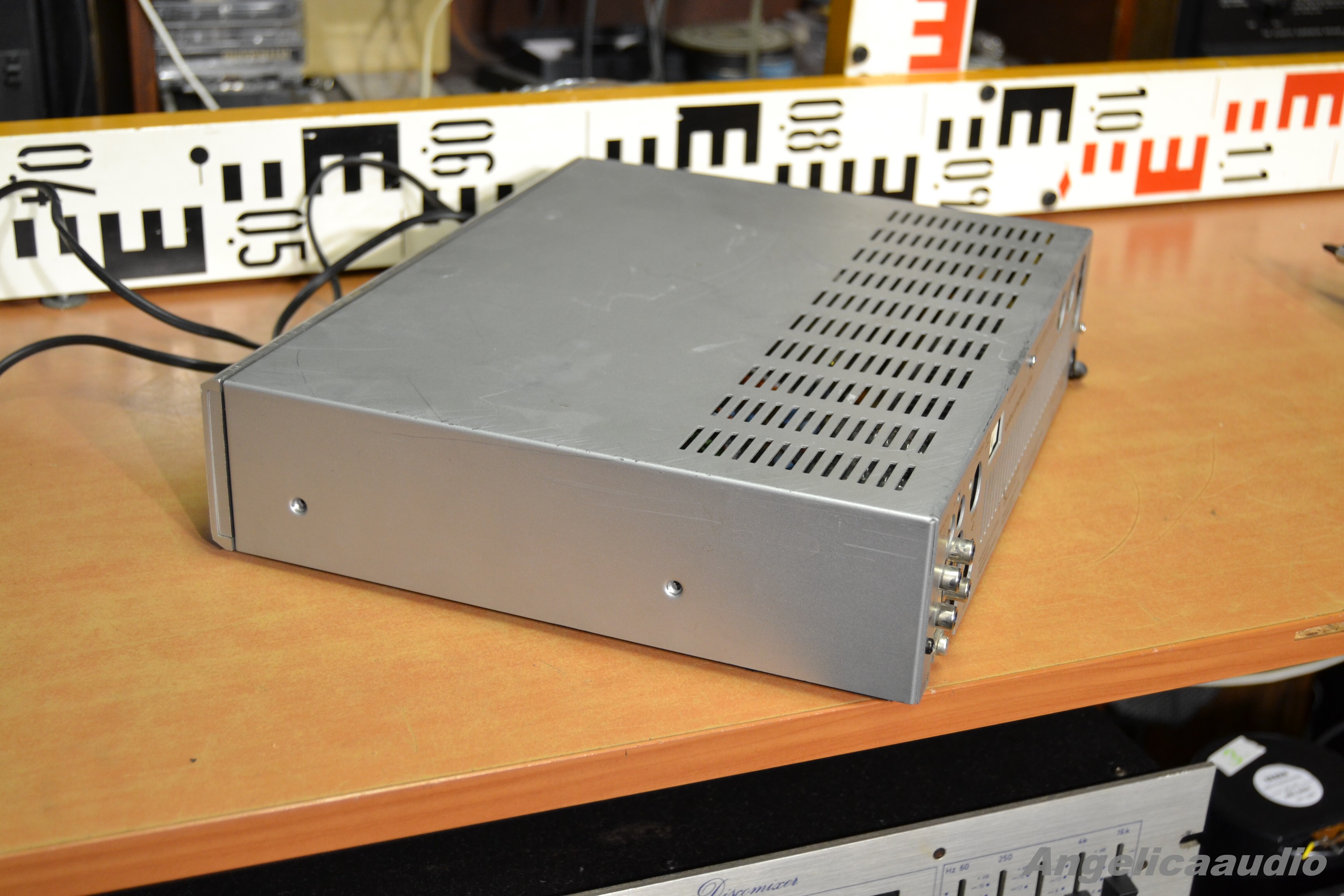 GRUNDIG V 30 stereo zesilovač k opravě. Velmi výrazné stopy používání – škrábance atd…, chybí boční šroubky krytu. Vzhled viz detailní fotografie níže. Funkčnost viz video – tj. velmi špatný zvuk z obou kanálů, momentálně nepoužitelné, neposlouchatelné – zařízení k opravě.