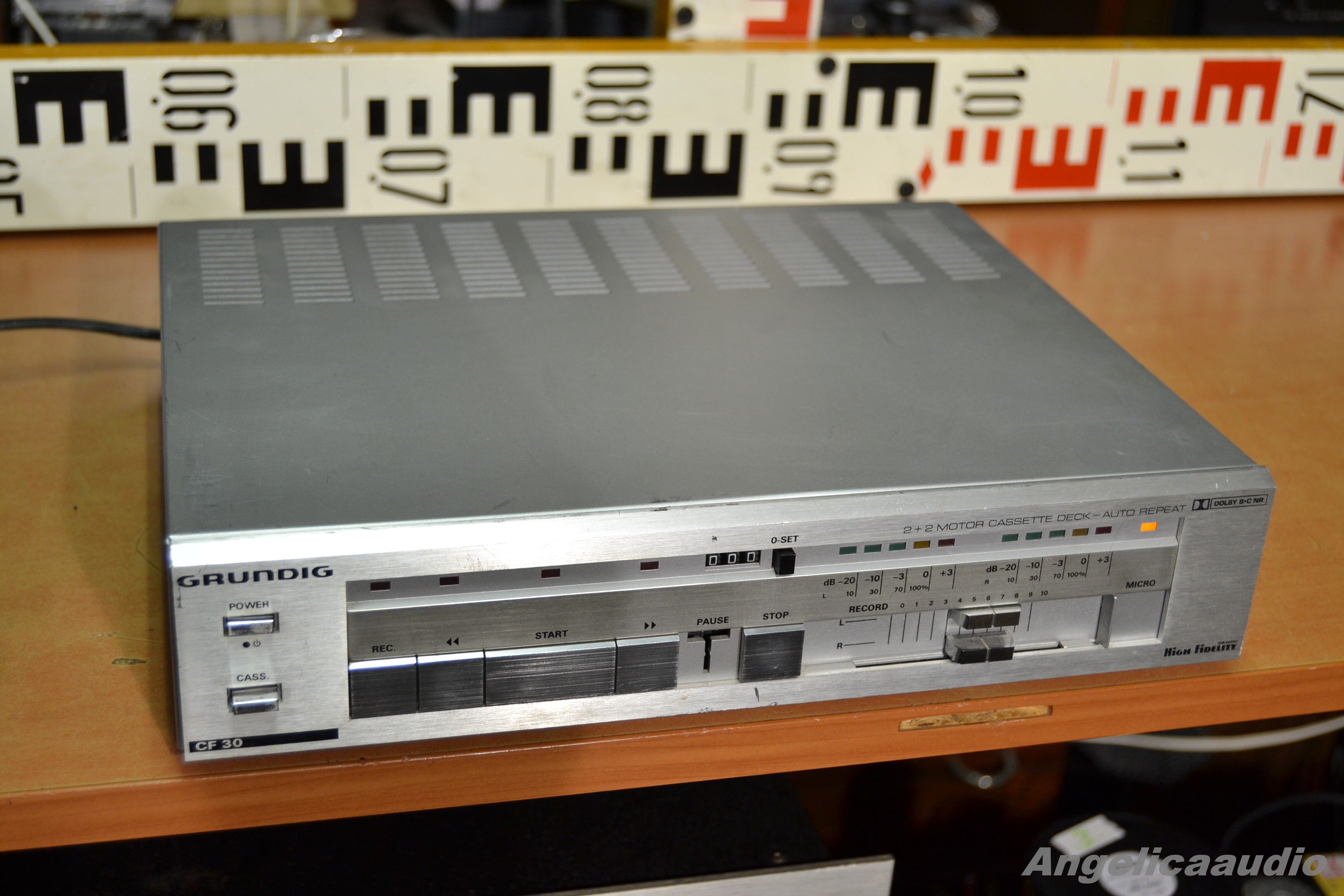 GRUNDIG T 30 stereo tuner. Velmi výrazné stopy používání – škrábance atd…, vzhled viz detailní fotografie níže, funkčnost viz video, nic jiného než vidíte na videu zkoušeno nebylo.