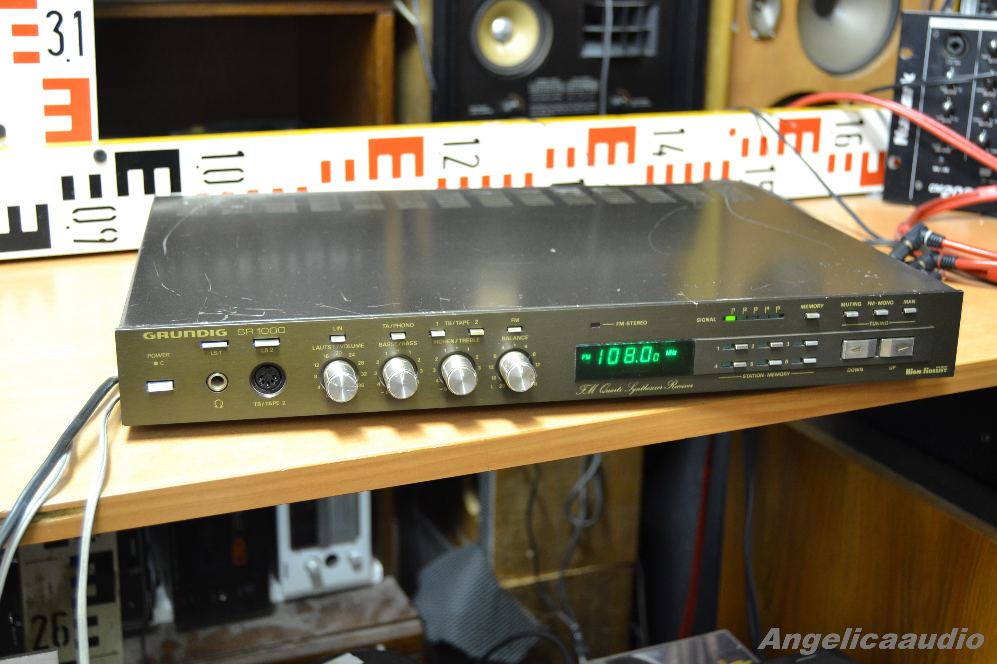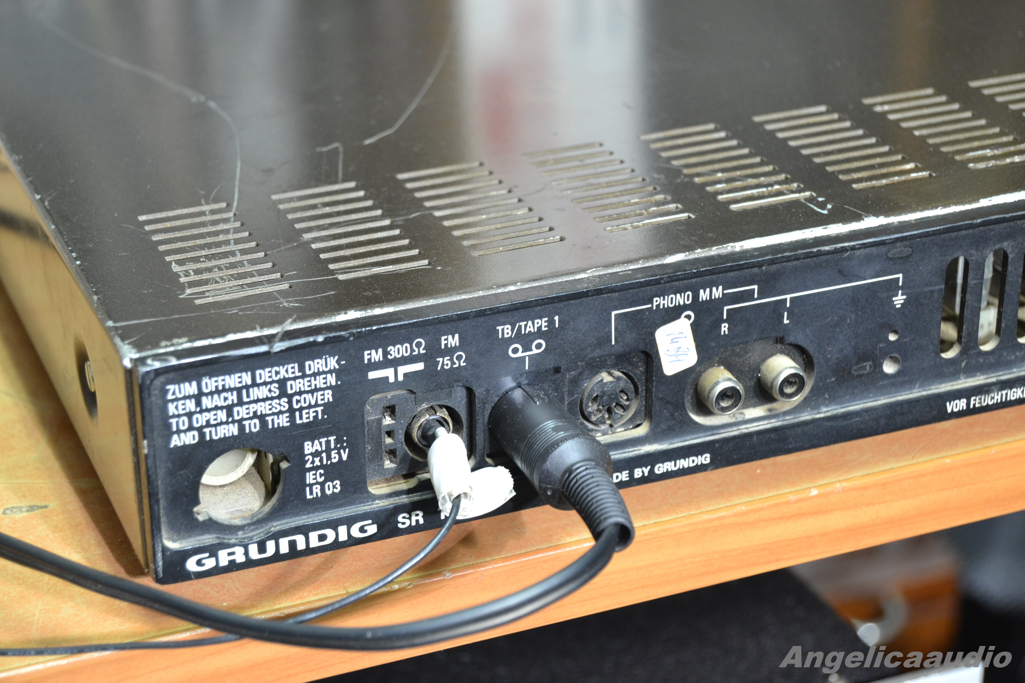 GRUNDIG SR1000 – stereo receiver. Velmi kvalitní a velmi těžké zařízení – bohužel ve velmi špatném stavu. Zesilovač sice hraje stereo na oba kanály – viz video, ale z tuneru jsem bohužel nedostal žádný zvuk. Manuální ladění viz video, automatické nereaguje, předvolby svítí kontrolky. Na videu sice displej tuneru poblikává – ale to je způsobeno záznamem – v reálu svítí normálně viz fotky. Velmi výrazné vzhledové vady – viz foto. Uvnitř nutné vyčistit. Chyběly šroubky horního krytu – doplněny pouze dva neoriginální, aby kryt držel na zařízení. Do prodeje jako nefunkční zařízení k servisu.