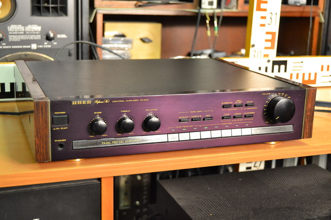 Referenční předzesilovač UHER Reference No.1 Control Amplifier PA 200. Vzhled výslovně viz detailní fotografie na odkazu níže – tj. zařízení vykazuje výraznější stopy používání a různá vzhledová poškození (miniaturní cinknutí povrchu na horní hraně čelního panelu, trošku výraznější ze spodní hrany čelního panelu, dále byl trochu odchlýpnutý povrch pravé dřevěné bočnice z přední strany – zahřáto fenem a upraveno do původní polohy – poškození je vidět při detailním pohledu na detailních fotografiích). Foceno při přímém osvětlení 800W halogenem kromě dalších stropních svítidel. Na fotografiích ještě vidíte nějaké chloupky od otření zařízení utěrkou. Co se týká funkčnosti, tak výslovně viz video na odkazu níže. Zařízení potřebuje vyčistit přepínače, protože při přecvakávání přepínačů (zejména těch ve střední horní části zařízení) zařízení prská a je nutné přepínače několikrát procvaknout, aby byl zvuk poslouchatelný. Do prodeje jako zařízení k vyčištění – servisu – údržbě, bez záruky na momentální zvukovou kvalitu.