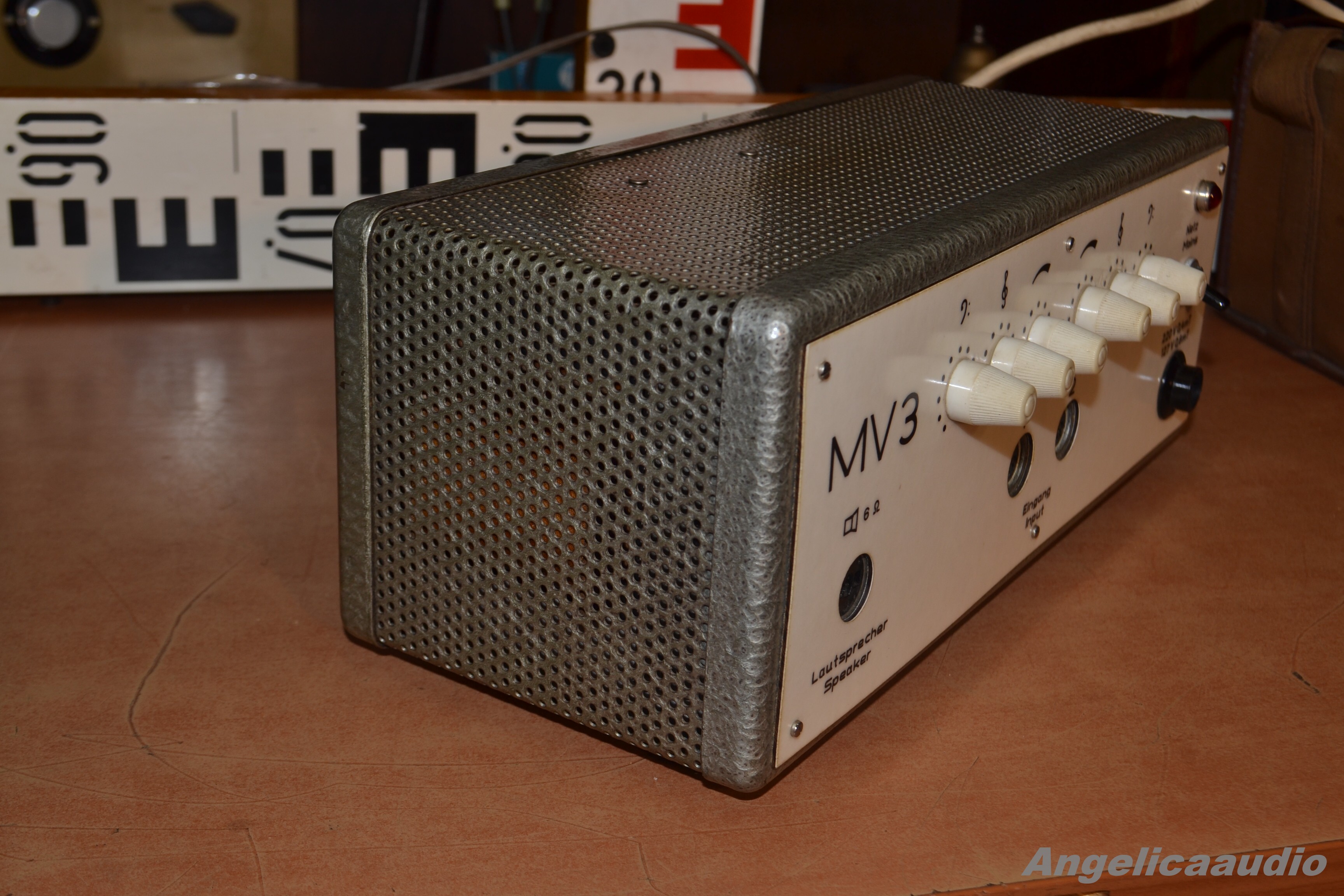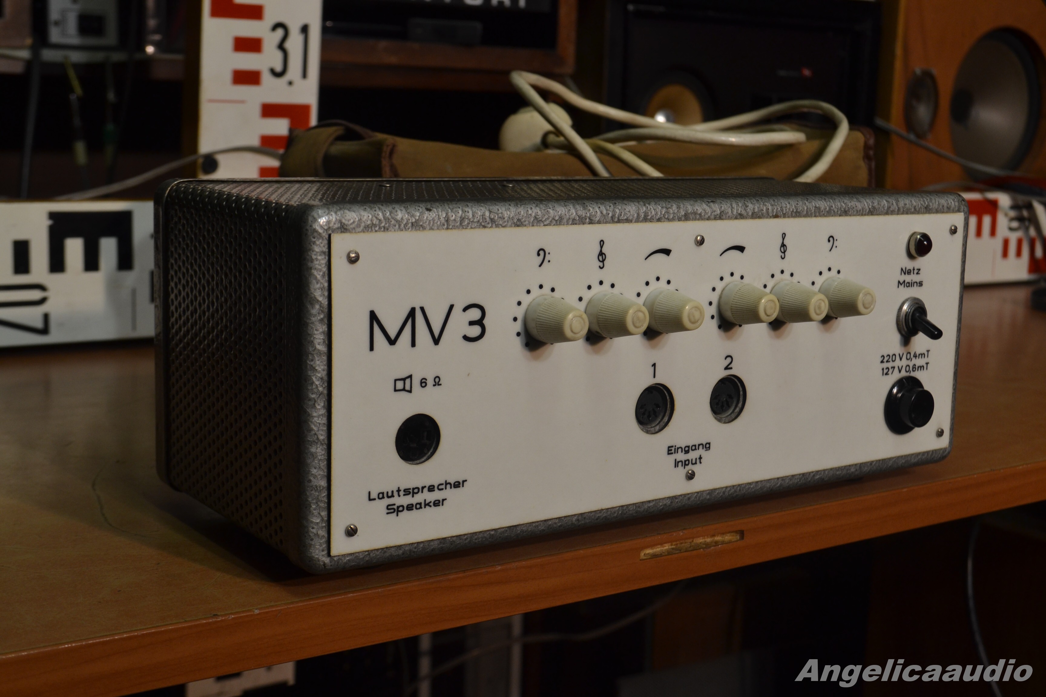 Zesilovač MV3 potřebuje údržbu. Chybí víčko hlavní pojistky a pojistka. Po vložení pojistky a provizorního víčka a připojení reprosoustavy jsem zesilovač cca na 2 sec. zapnul – rozsvítila se kontrolka a ozval se výraznější brum. Na videu vidíte tedy pouze funkčnost reprosoustavy (zapojeno na zesilovač QSC USA 400). PRODEJ MOŽNÝ I SAMOSTATNĚ – VA2 REZERVACE.